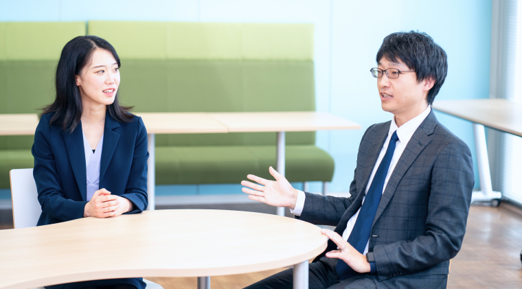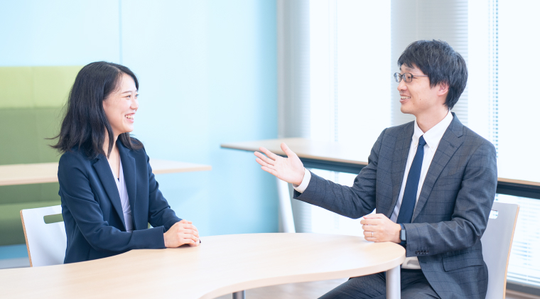 山田:私のときも6、7人の面接官がいて、最初は正直少し圧を感じましたが(笑)、全体的には和やかな雰囲気でしたね。2010年入所の私は、それまでまったく畑違いの損害保険会社に勤めていたのですが、そんな私の話に特に興味を持って聞いてくださった方がいて。グループに入ってすぐにわかったのですが、その方が上司の岡部さんでした。