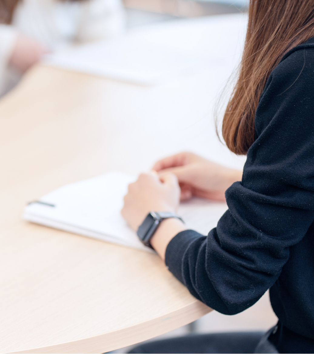 入所間もない時期は、先輩事務がついて基本的な事務作業を一つひとつていねいに指導し、その後、徐々に一人で案件を担当するようになります。その先にはクライアントチームの窓口担当や所内プロジェクトへの参画など、仕事の幅を広げて着実にキャリアアップできます。
