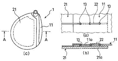 *1), *2) The English translation of claim 1 indicates that the connecting portion of the metal outer shell (11) is formed with “a plurality of through-holes” (13) and two shells (11,21) are connected by a “single” stitching material. However, it is indefinite from the original Japanese claim languages whether the connecting portion of the metal outer shell (11) has “a single or a plurality of” through-holes (13) and the shells are connected by “a single or a plurality of” stitching materials. This is because the Japanese language has no discrimination between singular and plural forms. Therefore, those portions are translated in plural and singular forms, respectively, in light of the disclosures of the specification.