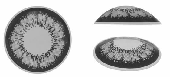 Contrarily, the prior contact lens design is substantially constituted by small dots and the inner and outer mountain-like configurations are spaced a certain distance away from each other. Also, the innermost edge of the inner peripheral edge portion defines a true circle.