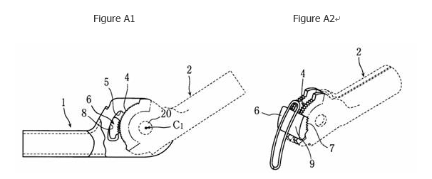 At issue was a partial design of an angular adjustment tool, generally indicated at 2 in the following Figures A1 and A2.