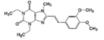 (E)-8-(3,4-ジメトキシスチリル)-1,3-ジエチル-7-メチルキサンチンの薄黄色針状晶。